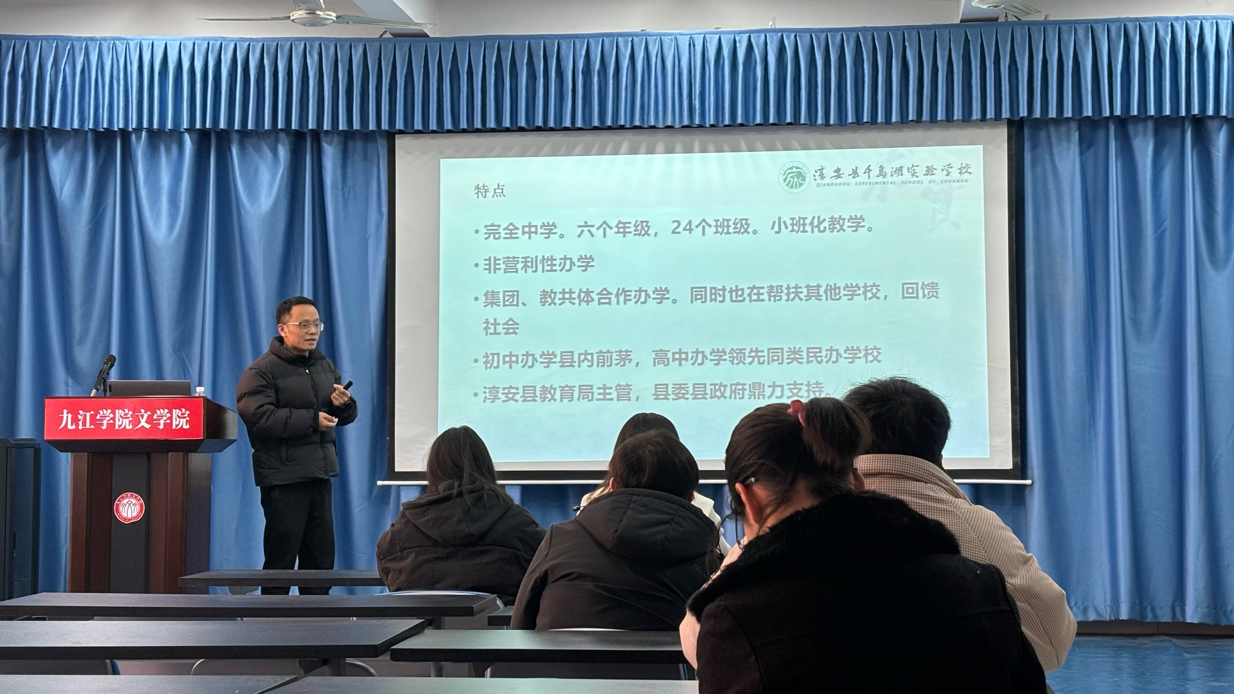 在此次宣讲会现场,杭州市淳安县千岛湖实验公司开展招聘活动,该校坐落于风景秀丽的杭州千岛湖畔,前身是创办于2014年的杭州千岛湖建兰中学,2022年8月更名为浮安县干岛湖实验公司。宣讲时,宣讲人展开详尽深入讲解,既明晰招聘岗位的专业适配度、技能侧重点等要求,又细致说明薪资构成、福利补贴等工资待遇,还生动展现宿舍从设施配备到生活便利性、分享职场工作节奏、团队协作氛围等实际情形,同时深入阐释公司文化价值理念、发展愿景与当地独特风土人情,让同学们得以拨开迷雾,对该公司形成全面透彻认知,拓宽自身职业选择的考量维度。