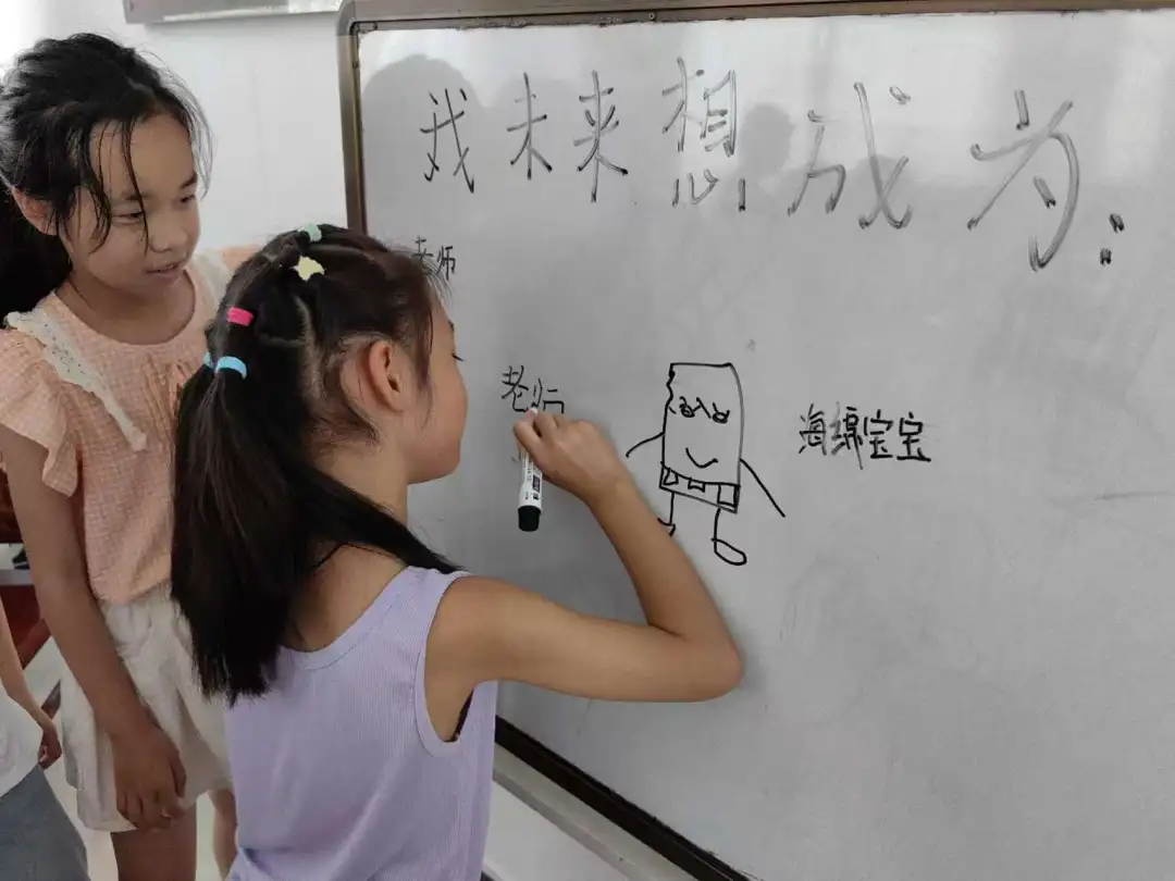 活动中,孩子们还进行了各种有趣的艺术创作,通过绘画表达对未来的期冀。他们挥洒创意描绘未来图景,有的同学梦想成为一名画家,用画笔描绘山河;有的同学表示想做一名人民教师,为国家教育事业奉献自我。小小的梦想在他们心里生根发芽,必将在未来成长为参天巨树。