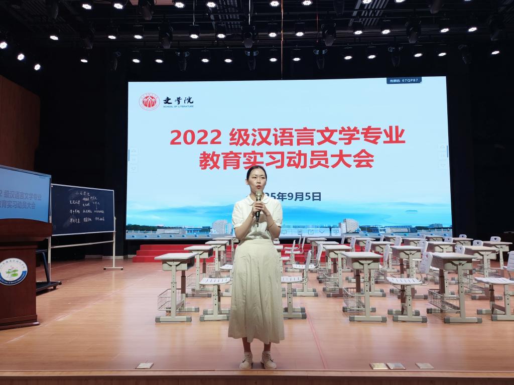 吴雯雯在总结发言中指出,实习是高等教育中不可或缺的重要环节,是理论知识与实践操作相结合的关键桥梁。她强调专业是每位同学的立身之本,专业所要求的素养包括口头表达能力、书面表达能力和教育能力等,背后蕴藏着言语能力、沟通能力、理性思考能力、批判性思维能力、审美评鉴能力等。教育实习不仅能够帮助员工检验所学知识的实际应用能力,更能够让师范生在真实的工作环境中锻炼自己的职业素养、团队协作能力和解决问题的能力。她希望全体实习生能够注意个人身份的转变,了解书本上不能了解的知识,学会做事,学会做人。最后,她再次强调了安全问题。