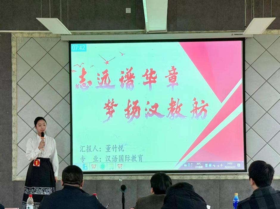 “通过前期的收集相关材料和制作职业策划书,我对“汉语国际教育”这个专业有了进一步的认识,也对我自己未来的职业规划更加清晰。其他参赛选手都非常厉害,多为各公司的员工会主席,很多从高中就开始参加国赛,比赛经验丰富。我从他们身上学到了很多,也看到了自己的不足,以后我会继续加油,相信好运藏在努力中,成功藏在奋斗中!”董竹悦在采访中说道。
